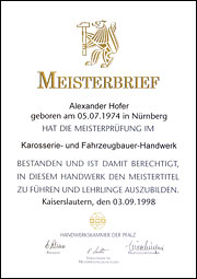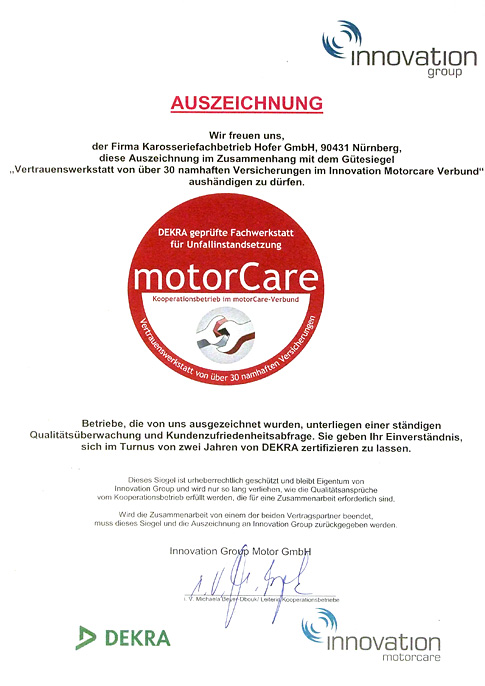 Als Meisterbetrieb gewähren wir auf alle Karosseriearbeiten, die von uns durchgeführt werden, 3 Jahre Garantie. Die Garantiezeit gegen Durchrosten entspricht den Herstellerangaben Ihres Fahrzeugs.